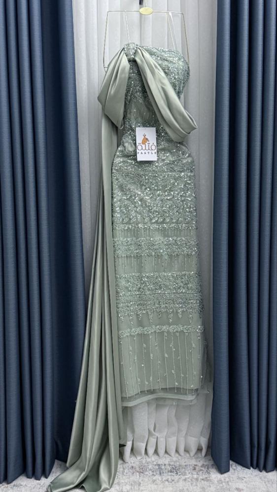 نوع القماش:: سهره تل تطريزخرز وذيل كلوش شيفون