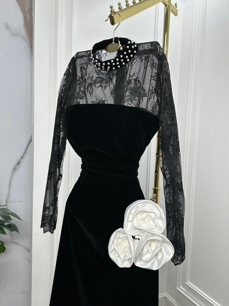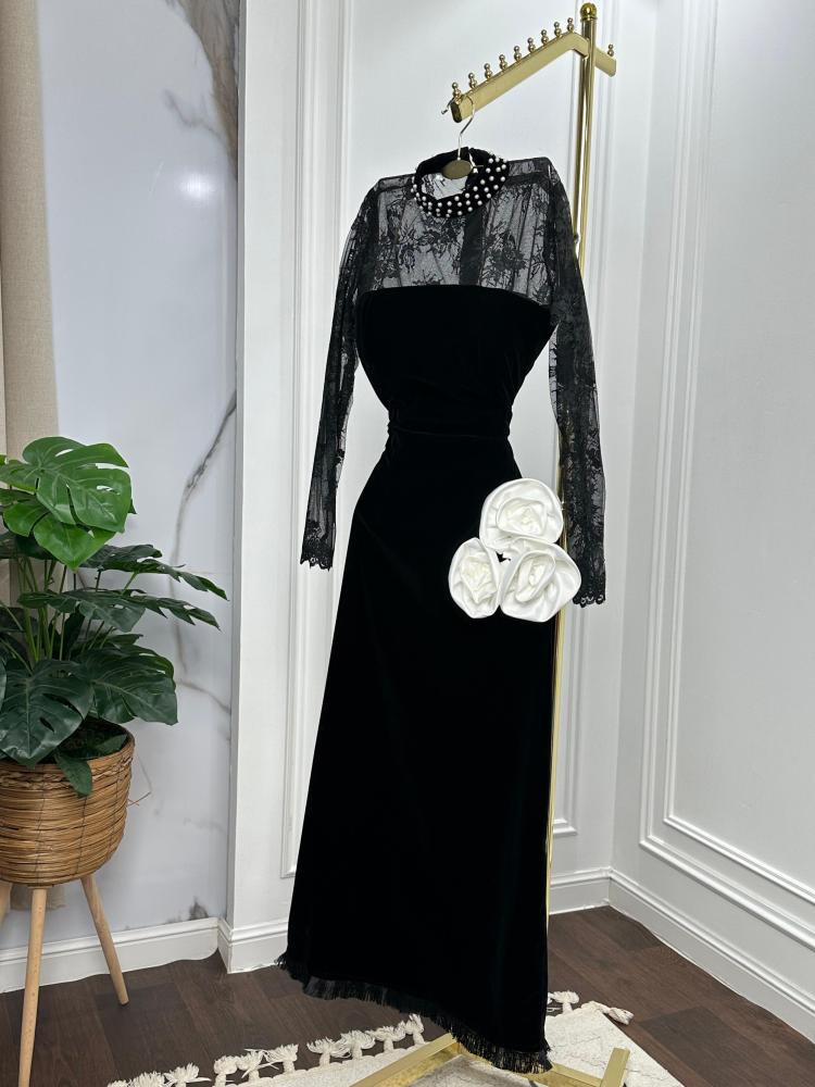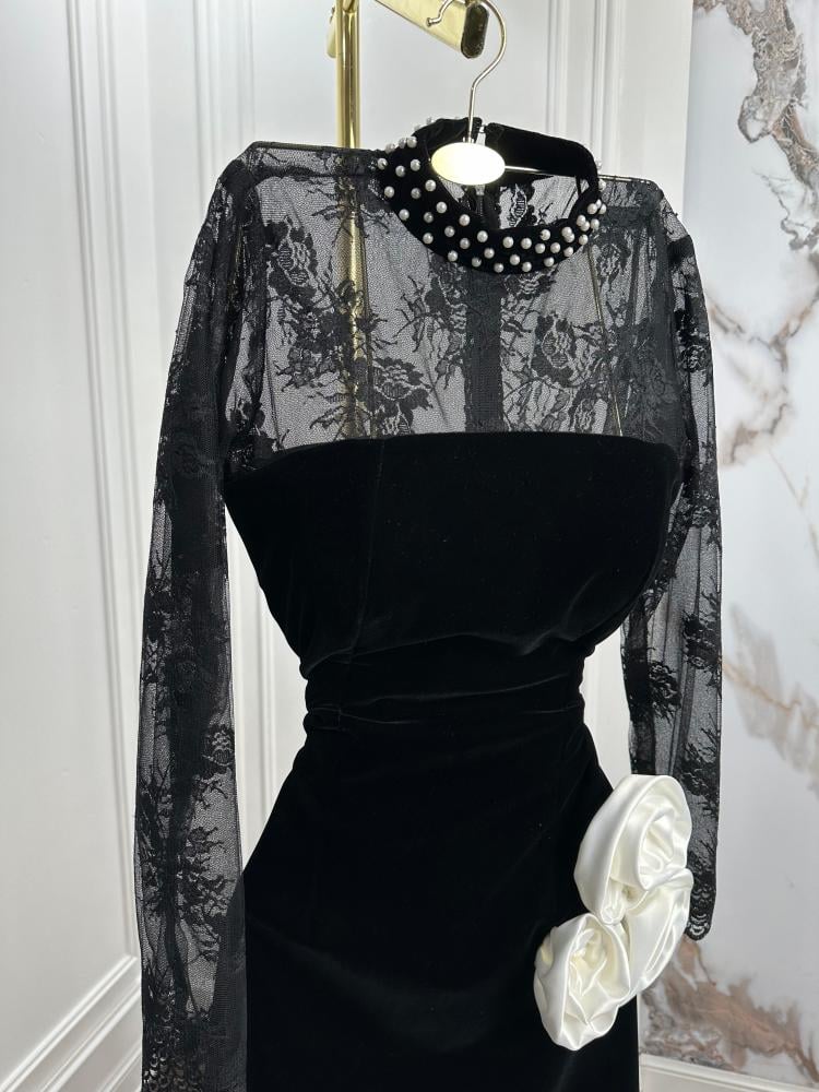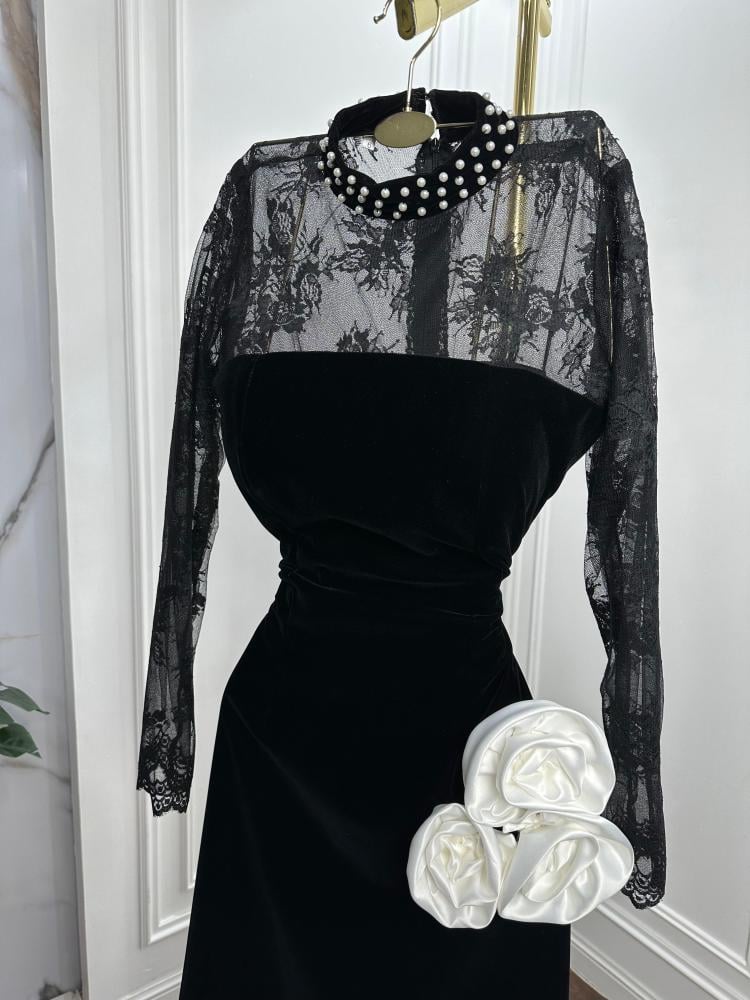 القماش: جوخ شتوي ناعم ، على لمسه من الدانتيل واللؤلؤ والورد