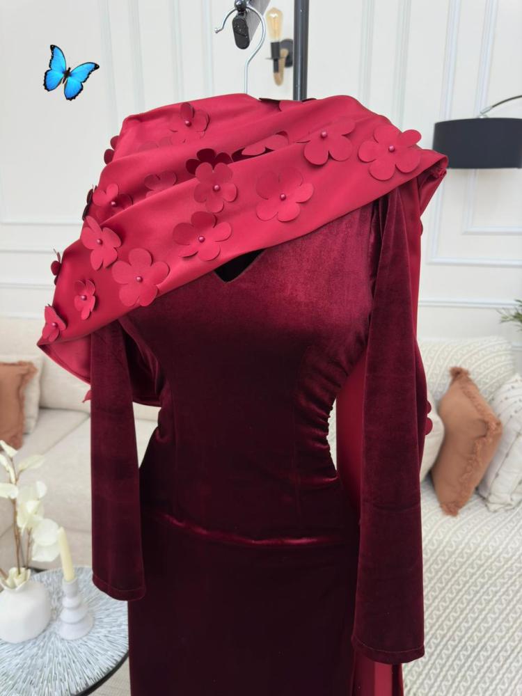 القماش:تل+مخمل ، تفتة استرتش، ورد ليزر لولو كبس