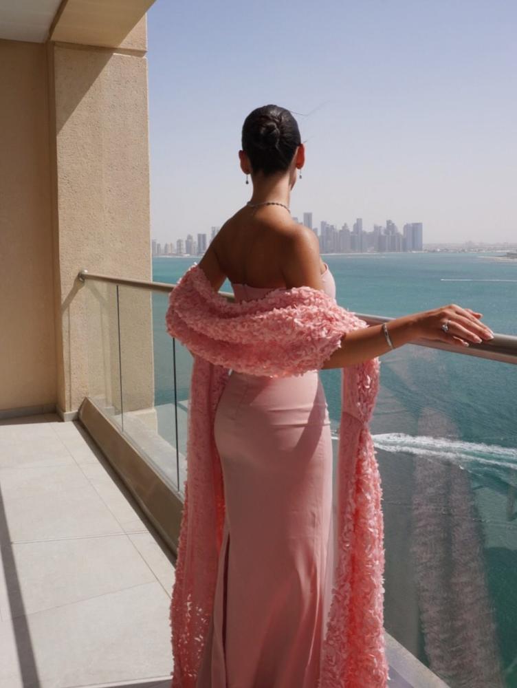 فستان باربي وردي مع جاكيت ورود منفصلة أنيقة