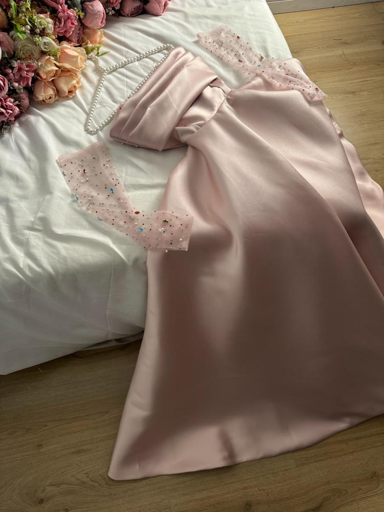 الخامه :ميكادو رااقي ساده الاصلي🥇+ جيبون سهرات سلك + كم وظهر وصدر فصوص معا كرستال اااصلي ملون